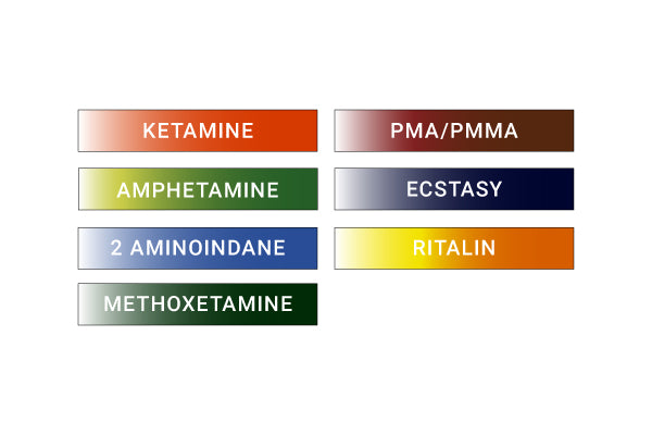 - (Meth)amphetamine: Will display a green colour change with amphetamine and a yellow/green colour with methamphetamine, allowing you to distinguish between these stimulants.